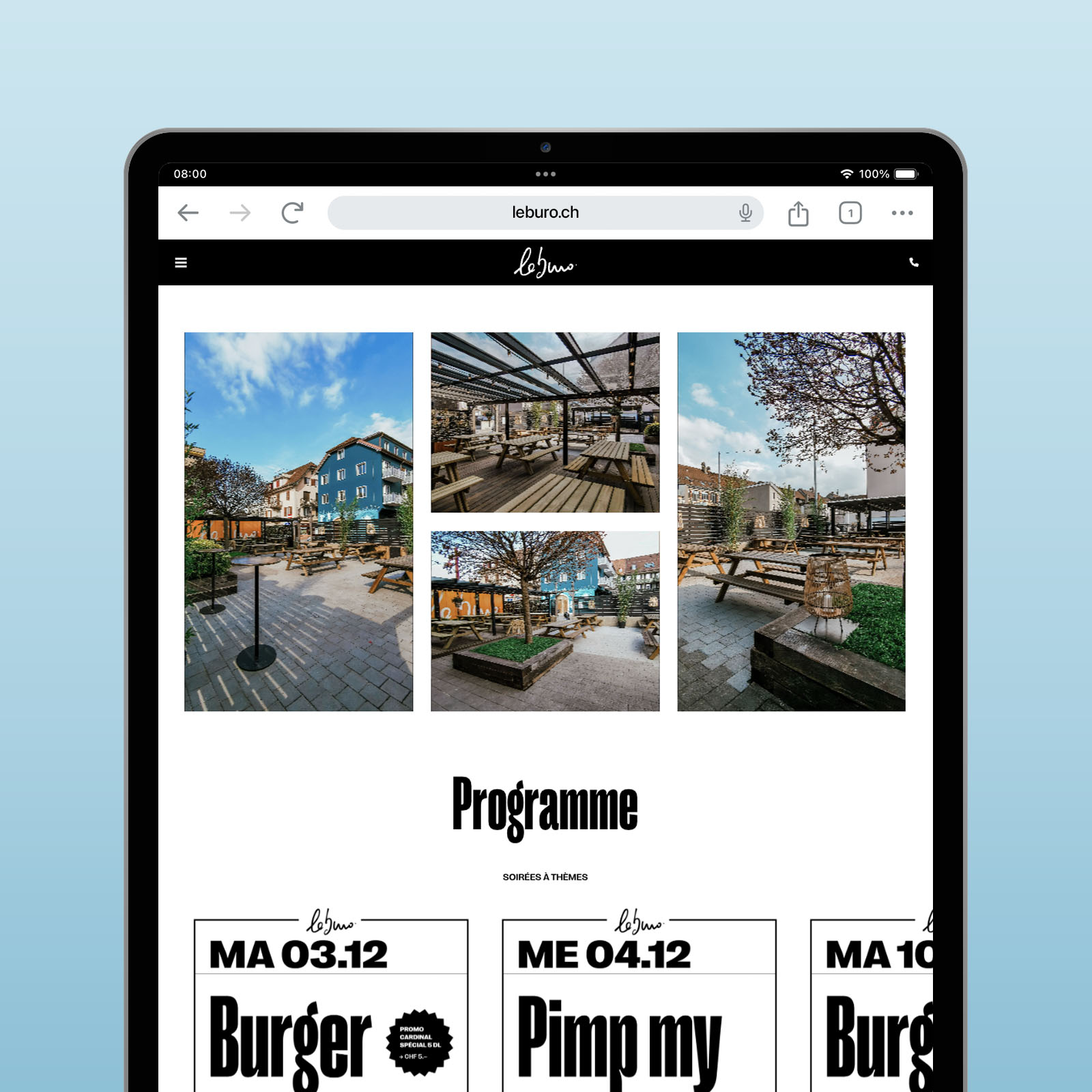Nous avons conçu pour Le Buro un site web convivial et dynamique, fidèle à l’esprit du bar bullois. Développé sur une base technique performante et responsive, il met en avant la carte, les événements et l’ambiance du lieu à travers une navigation fluide et un design moderne, pensé pour une mise à jour simple et rapide des contenus.