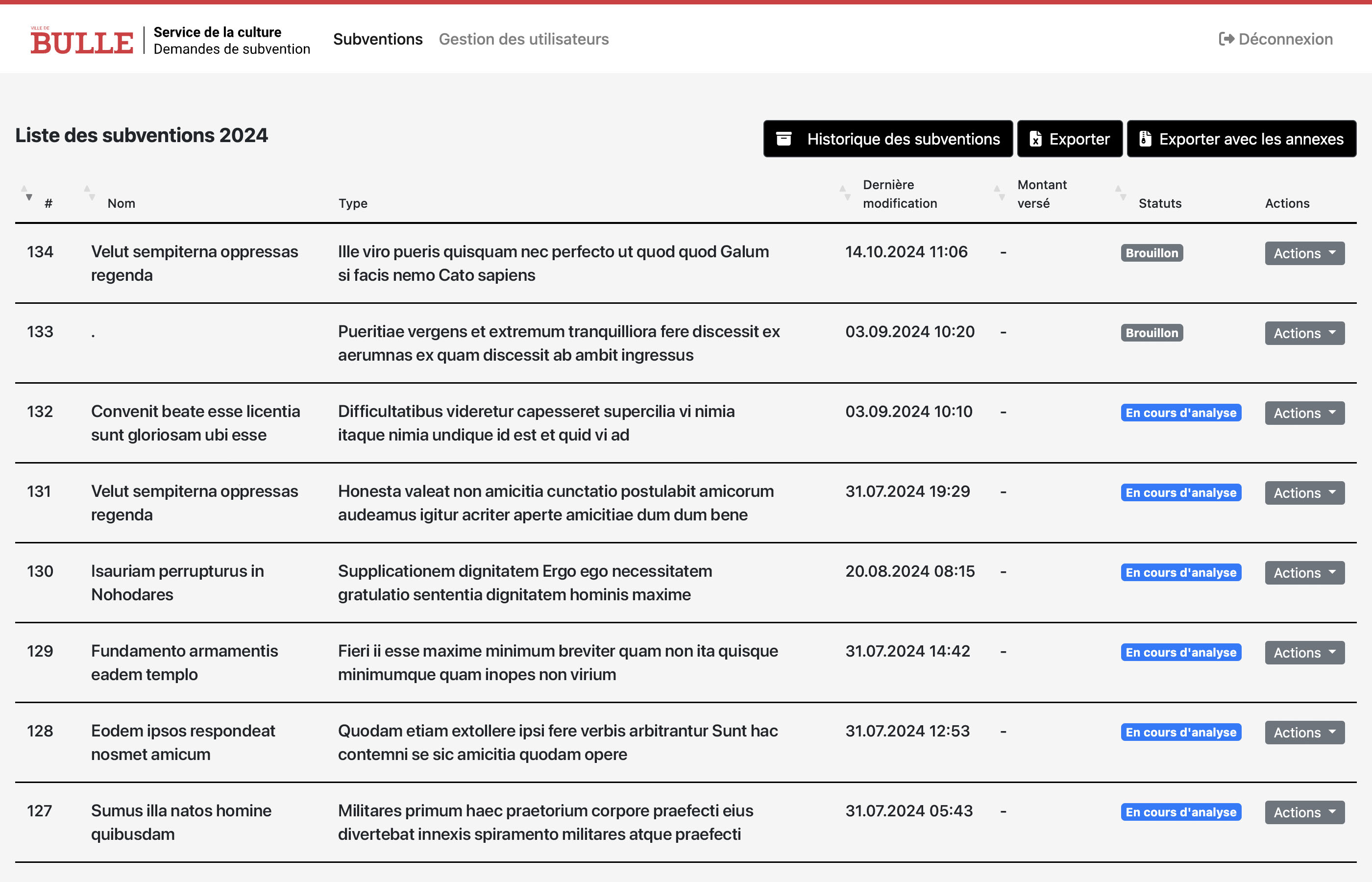 Module de subventions - Ville de Bulle