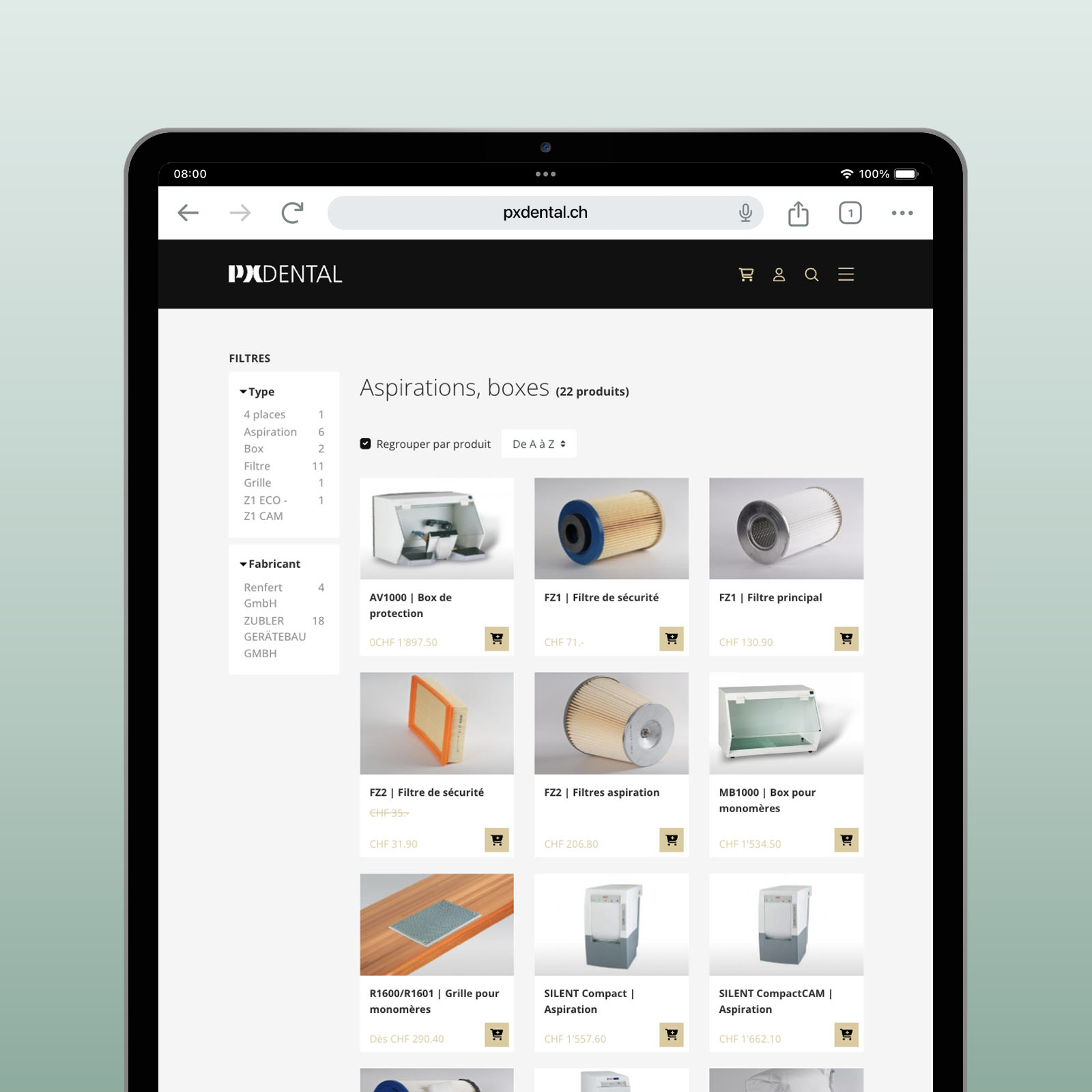Nous avons développé pour PX Dental une plateforme e-commerce complète dédiée aux produits et équipements dentaires. Pensé pour la performance et la simplicité d’utilisation, le site intègre un catalogue clair, une gestion fluide des commandes et un design responsive. L’expérience d’achat est optimisée pour les professionnels du secteur, alliant fiabilité et ergonomie.