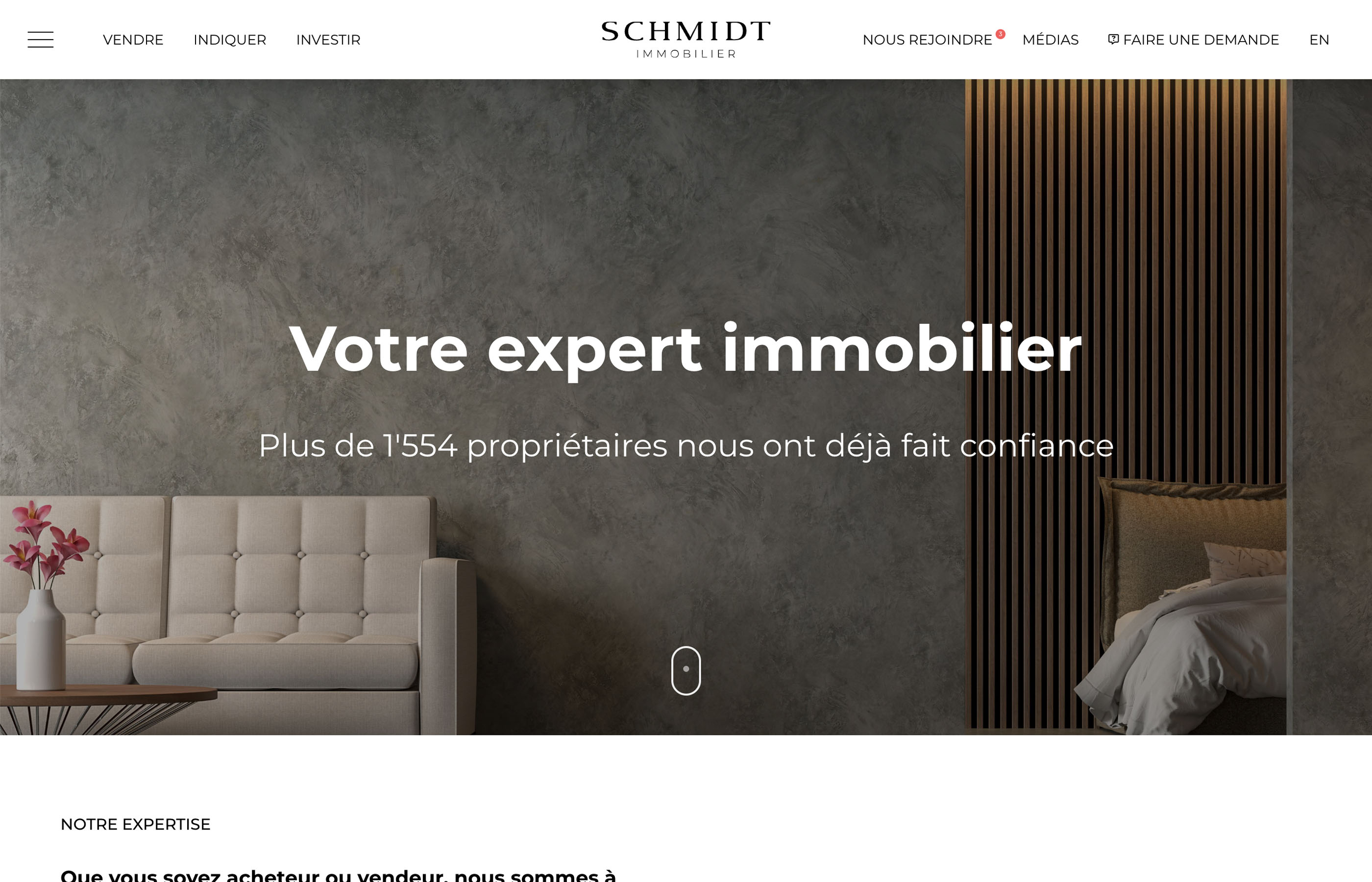 Nous avons conçu pour Schmidt Immobilier, acteur majeur de l’immobilier en Valais, une plateforme digitale intégrant annonces, services de vente et gestion de biens. Grâce à une architecture optimisée, un design responsive et des modules sur mesure, le site offre une navigation intuitive et une gestion fluide du catalogue immobilier. Il renforce la présence en ligne de l’agence et facilite l’interaction entre clients et professionnels.