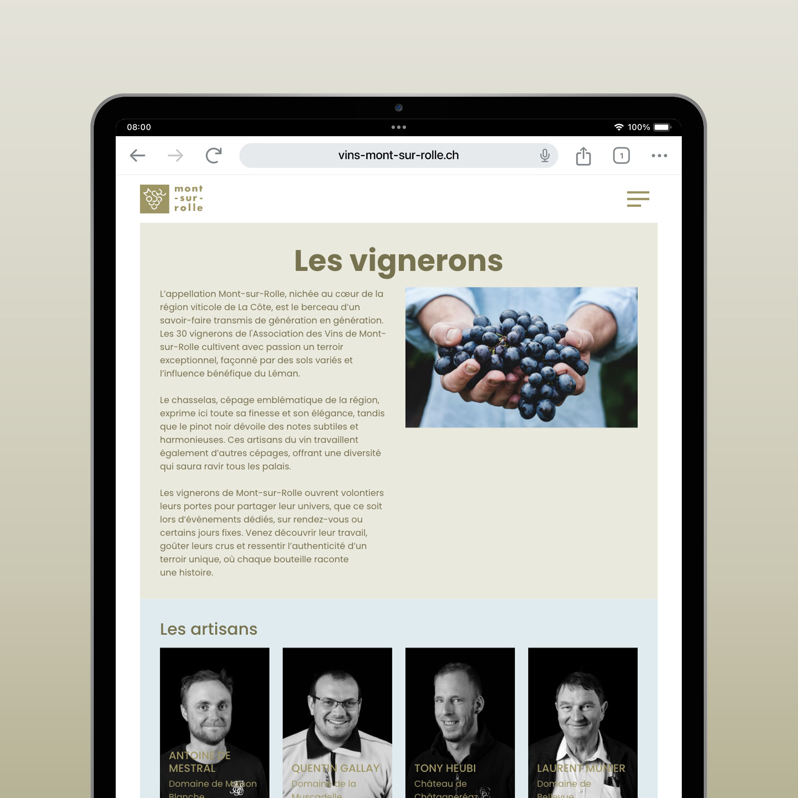 Nous avons développé pour les Vins de Mont-sur-Rolle un site web élégant et performant, conçu pour valoriser les producteurs de la région et leurs crus. Grâce à une architecture claire, un design responsive et une navigation intuitive, la plateforme facilite la découverte des domaines et la consultation des événements viticoles, tout en optimisant la visibilité en ligne du label.